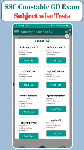 This is package of Practice sets or mock tests. It will help users to save their TIME and they can do more preparation for their Exams. It is based on CBT ( Computer based test) and online mode exams. By using this app, user can avoid understanding issues happened at the time of examination. User can get more practice sets by visiting our website. For any exam, user can get related practice sets of SMARTPHONE STUDY.