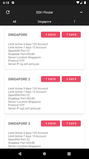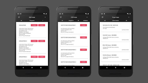 In this application there's ssh,vpn, and proxy server around the world that you can choose the location, account expiration, and account provider.