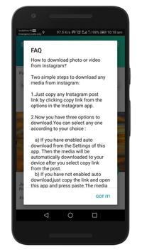 b) If you have not enabled auto download,just copy the link and open this app and press paste.The media will be automatically downloaded to your device
