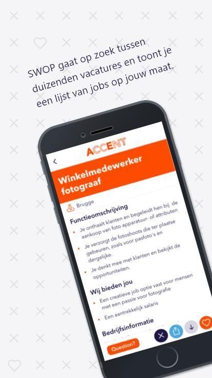 Register for free with your name and e-mail address, and your search starts immediately. Get access to thousands of vacancies on SWOP with one simple search. Skip the vacancies that you don't like by swiping links. Found an interesting vacancy? Save this copy or swipe to the right to apply immediately.