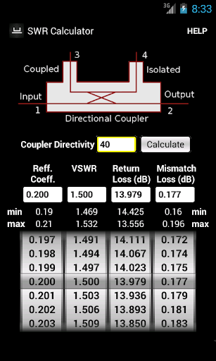Coupler Directivity Calculator is used to calculate the minimum and maximum values of Reflection Coefficient, VSWR, Return Loss and Mismatch Loss.