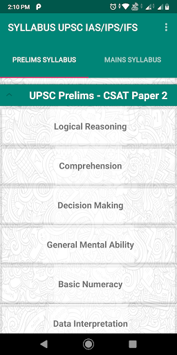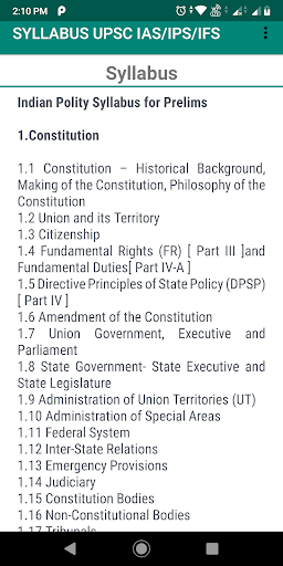 This App gives you detailed explanation of Syllabus of UPSC Civil Services Exams. All IAS/IPS/IFS aspirants who are preparing for Prelims and Mains Exams needs the detailed syllabus and recommended books to start the preparation. This App provides you with that solution.