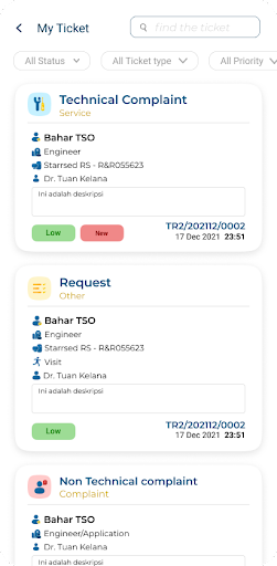 Uygulama & quot; Ben umursuyorum & quot;Bu, Takım Desteği (TSO, APL, Hanter) PT Saba Indomedika ve Pt Sysmex Endonezya'ya şu şekillerde bilet açmaya hizmet eder: