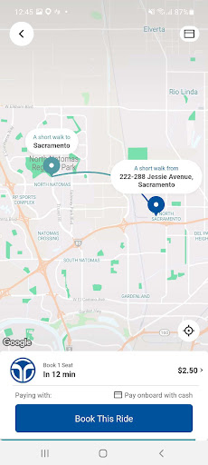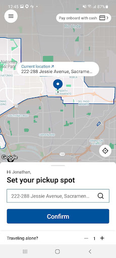 Current service areas offer curb-to-curb service where passengers are picked up and dropped off at the address they indicated when scheduling. New service areas offer corner-to-corner service where passengers are picked up and dropped off at the nearest corner or ‘virtual bus stop,’ which is usually within a block or two of their pickup or drop-off location. In the Downtown zone only, stops are at designated SacRT bus stops.