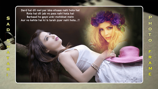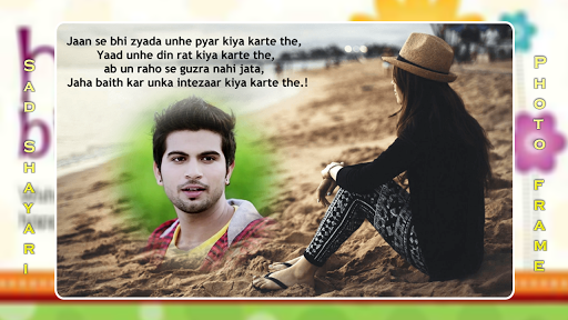 Sad Shayari Photo Frames is a free a android application for lovers and couples. to share your sad lovable feelings through this app. and experience of love with your broken partner this is best ever free app. this app is a good friend of lovers whose heart was broken by girlfriend or boy friend.