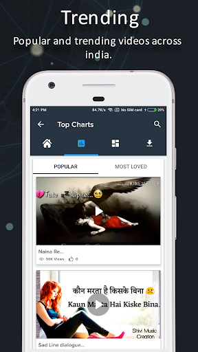 The app also contains 30 second video song status and 30 second whatsapp status.