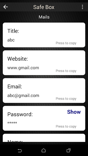SafeBox- password manager does not keep your complete data for your satisfaction, safebox splits data on to local mobile phone and server respectively. Safebox also encrypts the data with 32-bit AES cipher encryption as well.
