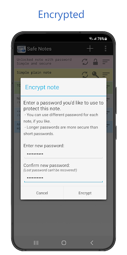 ✔ Encrypt individual notes and to-do lists with password.