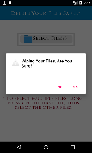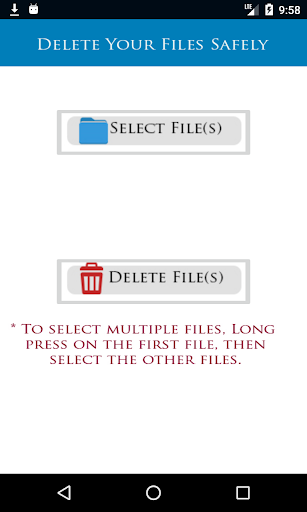 * هذا التطبيق يساعدك علي حذف ملفاتك (صور, فيديوهات، أو أي نوع من أنواع الملفات) بشكل آمن و نهائي، بحيث لا يمكن إسترجاعها مرة أخري عن طريق تطبيقات إسترجاع الملفات المحذوفه.