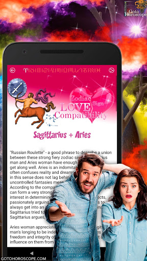 Sagittarius compatibility horoscope will help you understand your relationships with other Zodiac signs. It also has a cozy design you just need to slide from one Zodiac sign to another. Moreover, at the bottom of each fragment, you could find users comments concerning relationships between Sagittarius & other Zodiac signs, which are helpful for understanding your own connections.
