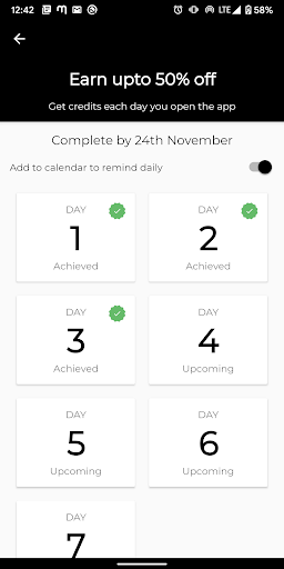 Just login into the app everyday and win cashbacks upto 50%.