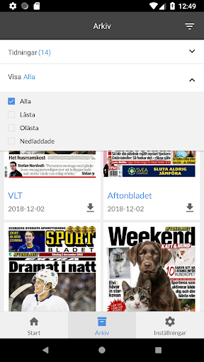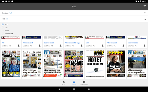 - يمكن فتح مقالات الصحف في وضع القراءة ويمكن قراءة المقالات بتوليف الكلام.في المرة الأولى التي تستخدم فيها التطبيق ، تحتاج إلى تنزيله وتسجيل الدخول باستخدام تفاصيل تسجيل الدخول التي اخترتها عند إنشاء حسابك. الإلكترونية.اشتراك تقوم بالتسجيل من خلال الانتقال إلى موقعنا.ولديك الفرصة لشراء حزمة تكميلية مواتية تتيح لك الوصول إلى Newspaper من Aftonbladet.
