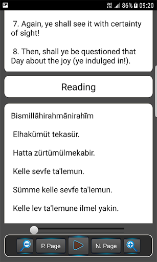 If you want to memorize short surahs in Quran this application for you. You can find short surahs, their meaning and how you read them. You can find in arabic letters. If you do not know arabic, you can find latin letters. So, you can memorize, you can read meaning and you can listen how they read. So, this application very useful. You can use zoom in and zoom out button if you do not read. And you can find some connection for our other religion applications.