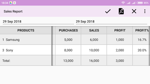 • Get detailed reports on your sales, profit, and margin percentage, as well as your stock levels.
