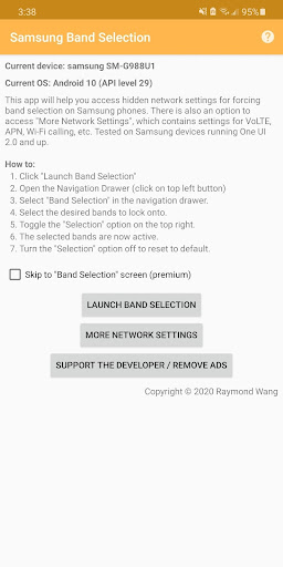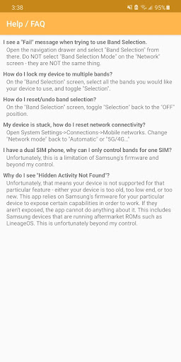 This app will help you access hidden network settings for forcing band selection on Samsung phones. Some example use cases may include, but not limited to: