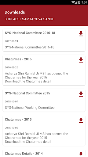 This App is dedicated to Swadhyay, Sewa & Sanskar and spreading the thoughts of Acharya Shri Ramlalji M.S., Providing information on the whereabouts of Sant and Satiyaji to the members so that they can get divine guidance and blessings from them, it also gives events and announcements of SYS.
