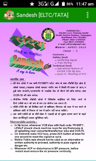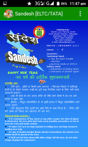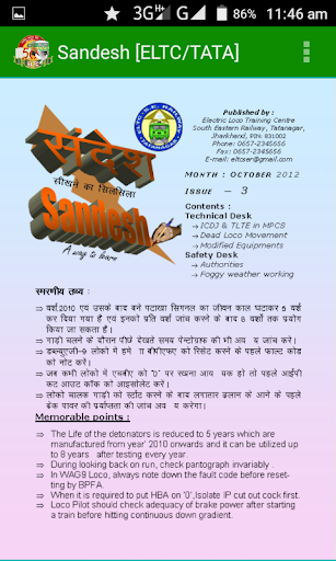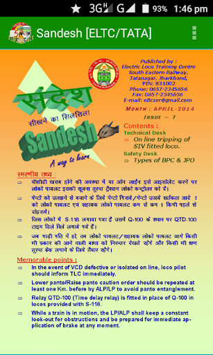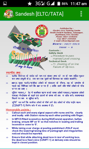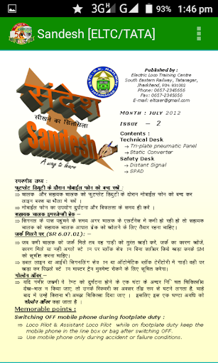 A quarterly magazine published by ELTC TATA in the Title of Sandesh, for updating knowledge of LOCO running staffs of Indian Railway on transportation & technical issues.
