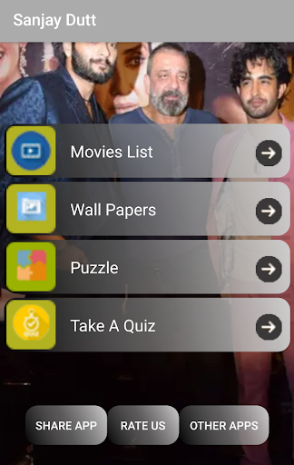 This Application display the information of Sanjay Dutt movies, it will not play any video or audio of his movies, It is a multi purpose application to