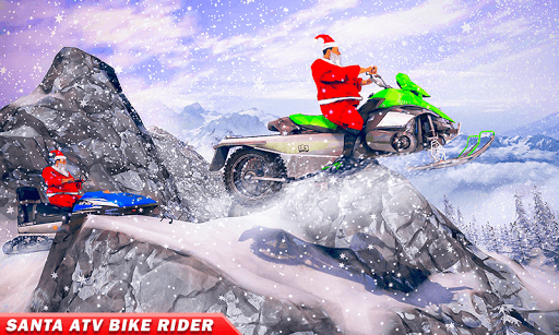 Santa Snow ATV Bike Racing 2k21 brings amazing entertainment for lovers of fun and adventure. This is a fun and racing package in which you maximize your best ATV cycling skills in snowy areas. This game becomes more interesting when you find yourself as Santa Klaus Snow Bike Rider, which makes your face happy and cheerful. Not all snow games are the same in terms of entertainment, here you will find an amazing combination of Snow Sled competitions, Snow Mountain competitions as the best snow games of 2021. These Snow Bike Racing League competitions have many of the best ATV riders Who intend to compete in this league. To win this race, you must improve your skills, you will feel blessed by wearing Santa Claus costume. Santa is not only an ATV Bike Rider, but also a gift truck driver and a great car driver. Do not hesitate before entering the cycling mania, Santa Trial is the second name of this game Snow Mountain Terrain. Explore all of these snow-capped mountains as Santa Bike Rider in the snow game. This game is the snow season and Santa's Christmas, both have more expectations for everyone.