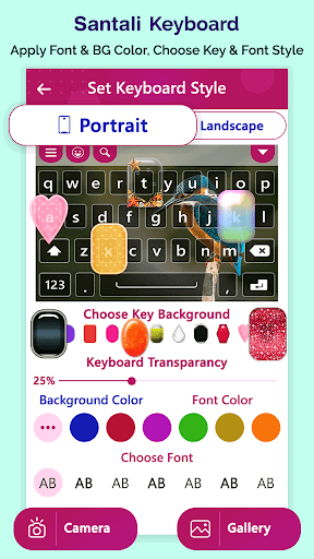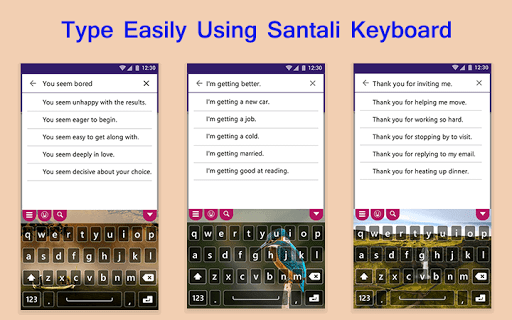 helps you to type in Santali language smoothly with eye catching themes. Select amazing themes to set your Santali keypad background or you can select your own photo from gallery or camera to make your beautiful keyboard background.