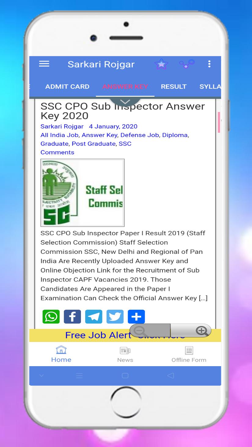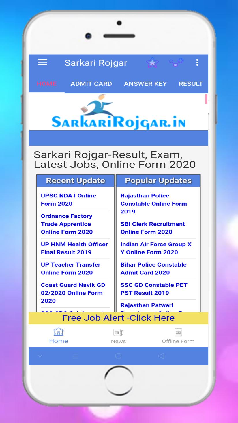 Sarkari Rojgar App are Made in to Provide All Government Job Alert , Including Government Job, Admit Card, Result ,Answer Key and Many More. So download This App.