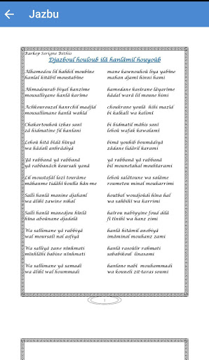 Cette application vous permet d'accéder en tout moment au sass en arabe et en français. Le sass est un recueil de khassaïde sélectionnés par notre vénéré guide SERIGNE SALIOU MBACKE.
