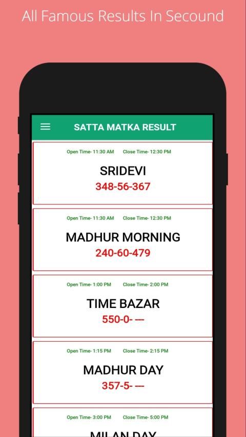 With our advanced satta app we offer live results – fastest seen in one app! No matter if you need fast and live results for time bazar rajdhani day milan day kalyan or milan night rajhdhani night and main Mumbai, we have something for everyone! Just open the satta matka results app and in seconds you’ll be informed in real time. Simply, we are the ultimate online all satta matka result app!