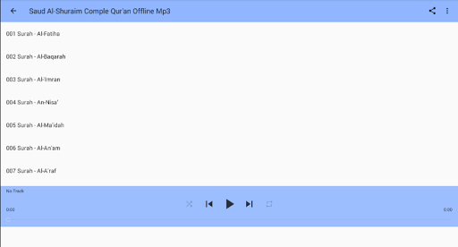 Complete Holy Quran mp3 offline voice of Sheikh Saud Al-Shuraim . Just download and start listening to the recitation even when offline.