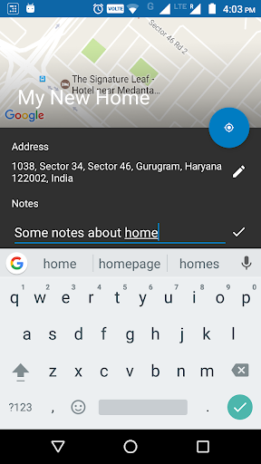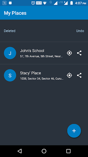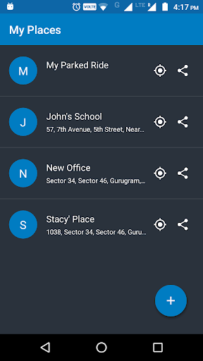 Moved to new city and don't remember roads yet ? No Problem ! Save places you visit in My Places once and navigate there later with single click. My Places automatically fetches address for saved location. Also you can edit it later.
