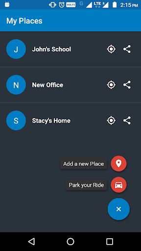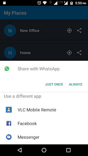 Share any location from anywhere to your friends or family anytime without the hassle of opening map. Use My places, its quick and easy.