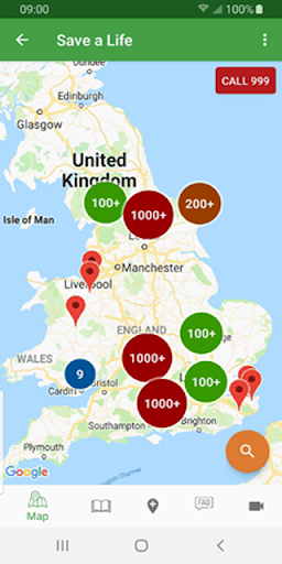 The app uses your current location and a list of known publicly accessible defibrillators to find the one nearest to you. Each defibrillator is marked on the map and, when selected, details of its location are displayed, as well as how to get there.