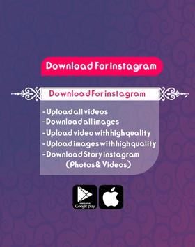 allows to download videos and images from INSTAGRAM's links. By copying image's and video's link and pasting into Inst Download which automatically downloads that video/image, then you can save into your device, repost on INSTAGRAM, share FACEBOOK, TWITTER and other social networks.