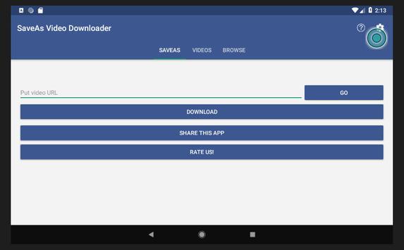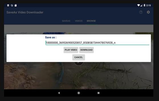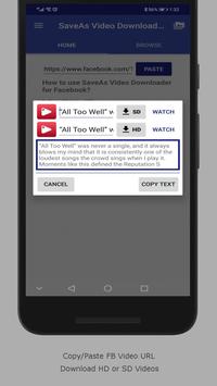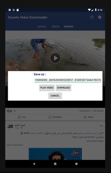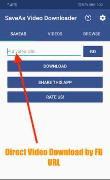 SaveAs HD video downloader for Facebook which helps you to browse your fb for direct download with a simple click and also you can save Video by Copy/Paste video post URL and this tool can help you to save videos HD as MP4 files !