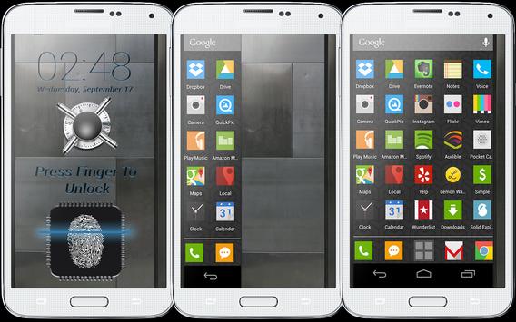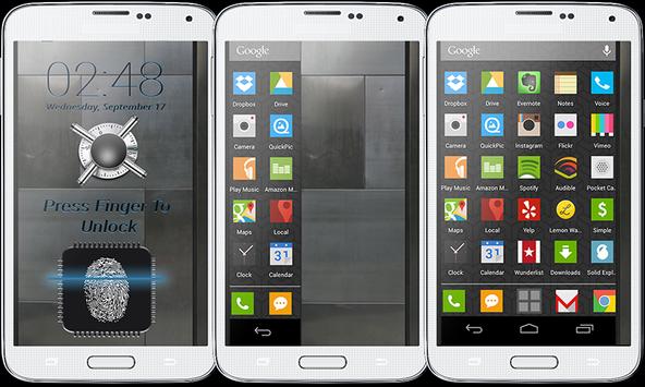 2. In the lock screen page, press your finger on the center lock icon and scan for 3 seconds( as you set at the first step), the fingerprint door lock scanner will imitate the animation as already recognize your fingerprint and your phone will unlock quickly. If you press more or less then 3 seconds, your phone will still be locked.