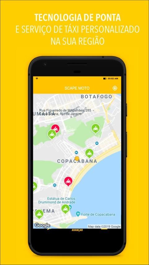 Nosso aplicativo permite que você chame um de nossos mototáxis e acompanhe o deslocamento do veículo no mapa, sendo avisado quando ele estiver na sua porta.