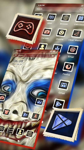 Try this new Scary Clown Theme Launcher today and change the way you use your phone. Scary Clown Theme gives you a new unique style with new icon themes, Scary Joker wallpaper, and an amazing overall theme !
