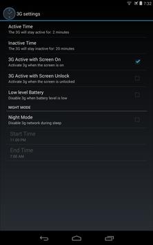 - Night Mode (configurable): The 3G or WiFi connection will stay inactive during this time (FULL VERSION)