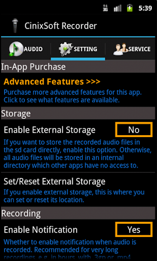 2. Hidden/Stealthy: The recorder is running totally in background. Once you configured it, it runs without your care. It works even when you switch off the screen or exit the app or reboot your device