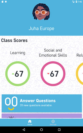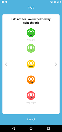 - Students respond to weekly questions by tapping on a smiley scale from 1-5.