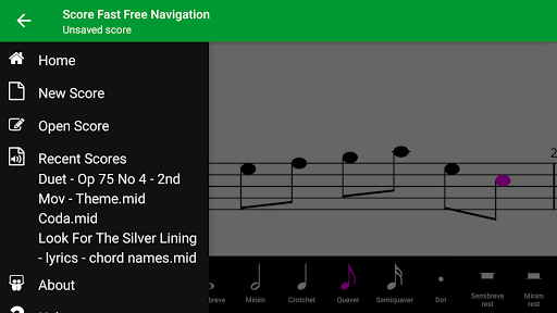 - Compose and edit your music faster than writing it on paper simply by selecting a note, rest or other musical notation and then tapping on your score.