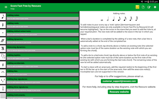 - Help is readily available within Score Fast Free. Inline help is available by long pressing on any “option”. All functionality is thoroughly documented.