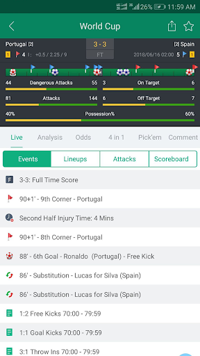 We cover all odds like 1X2, goals / corners over / under 1.5 / 2.5 / 3.5, handicap win / lose, half time / full time and in-play from the best bookmakers in the world.
