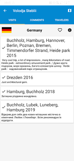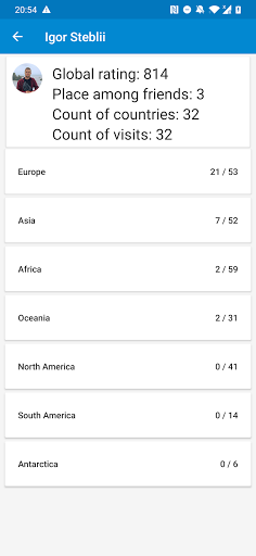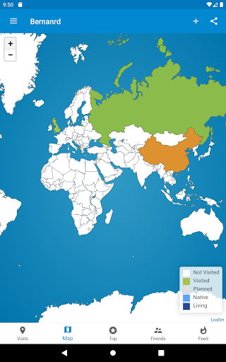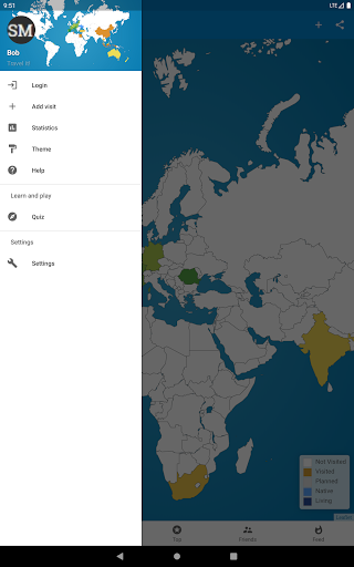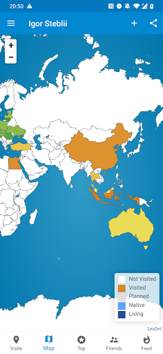 Open ScratchMyMap to: “scratch" countries to show friends where have you been, plan to be and rate countries; create your trip history with impressions, images, audio and video description; see trip history of your friends and left them comments; help friends know more about your “scratched” countries; see friends and countries list ranking; get all actual structured information and know what world think about each country in one click.