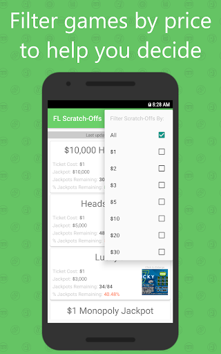 The Florida lottery provides so many different scratch-off games, how are you supposed to choose one to play? With the Scratch Off Guide for Florida Lottery, you have instant access to all of the relevant data about each game that you can use to buy the perfect ticket for your strategy. The app provides a list of all available games along with the tools to filter and sort that list of scratch-offs down to just the ones that you'd want to buy.