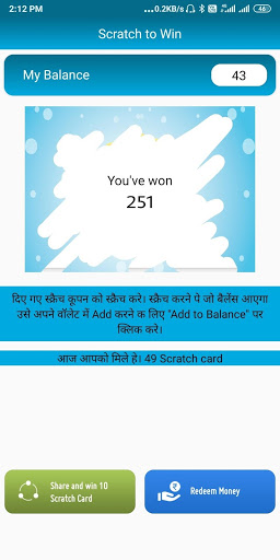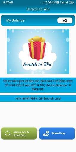 Scratch and Win Real Cash" App Is Designed For User's Entertainment Purpose. Users Can Get Some Some Virtual In This App Only By Scratching Some Cards.