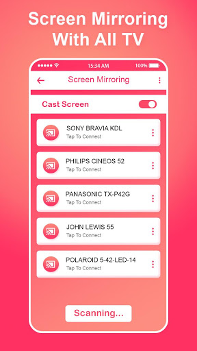 Screen Mirroring: Connect Mobile to TV App will assist you to scan and mirror your android phone or tab's screen on smart TV/Display (mira cast enabled) or Wireless dongles or adapters.