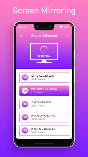 Screen Mirroring app will help you to scan and mirror your android phone or tablet screen on your Smart TV display. Enjoy your mobile screen contents or tablet screen in your smart tv screen using screen mirroring.