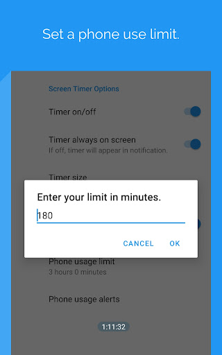 Sometimes, we unlock our phones, and go from app to app. Before we know it, so much time has gone by. Screen Timer aims to remedy this by showing you a timer with your phone usage.
