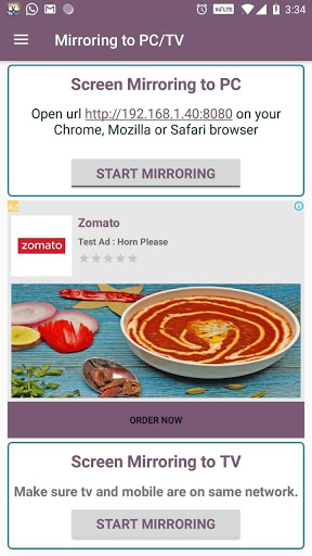 4 : On Android Mobile App press "Start Mirroring" button