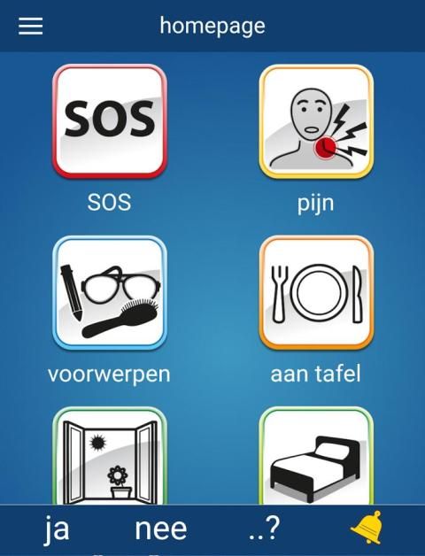 meer dan 130 iconen, elk geassocieerd met een naam en opgenomen zinnen (zowel vrouwelijk als mannelijk stemmen mogelijk)